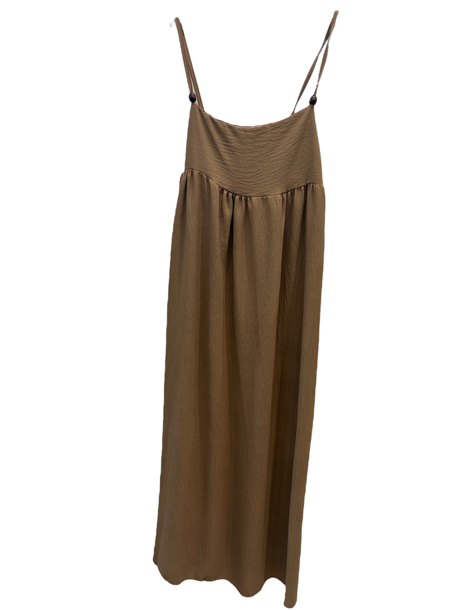 Delicato e femminile, questo abito in tessuto leggero è il capo ideale per le giornate estive. Le spalline sottili regolabili con dettaglio a perla aggiungono un tocco raffinato, mentre la parte superiore leggermente arricciata in vita dona una silhouette morbida e fluida. Il colore azzurro polvere esalta la freschezza e la semplicità del modello, rendendolo adatto a ogni occasione: dalla passeggiata in città a una serata sulla spiaggia.