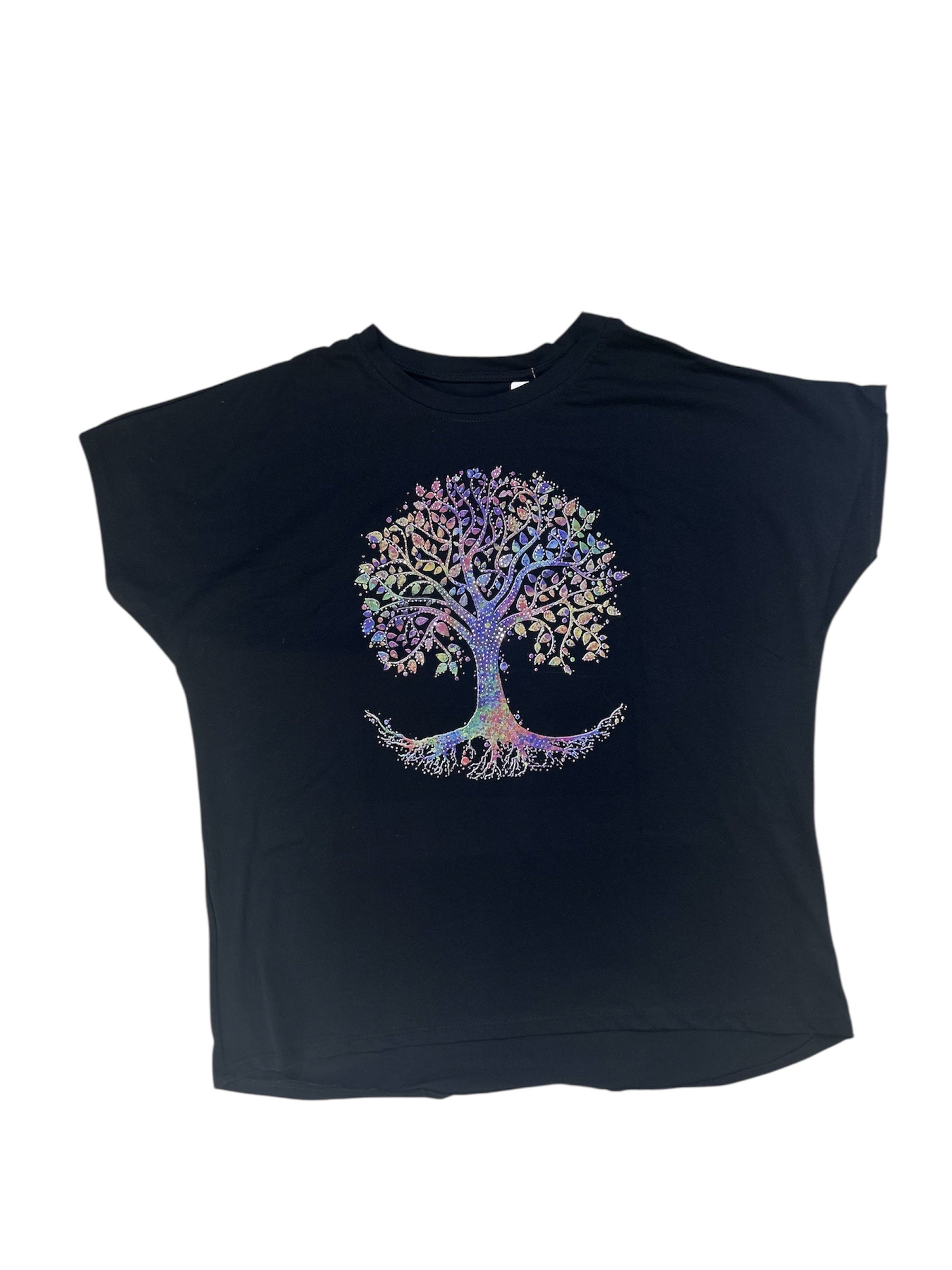 Celebra la connessione tra natura e spiritualità con la t-shirt "Albero della Vita Arcobaleno". Realizzata in morbido cotone nero, questa maglietta presenta una splendida stampa multicolore dell’albero della vita, simbolo di crescita, forza e armonia. I dettagli luminosi e i colori sfumati donano un tocco di originalità a un capo casual e versatile.