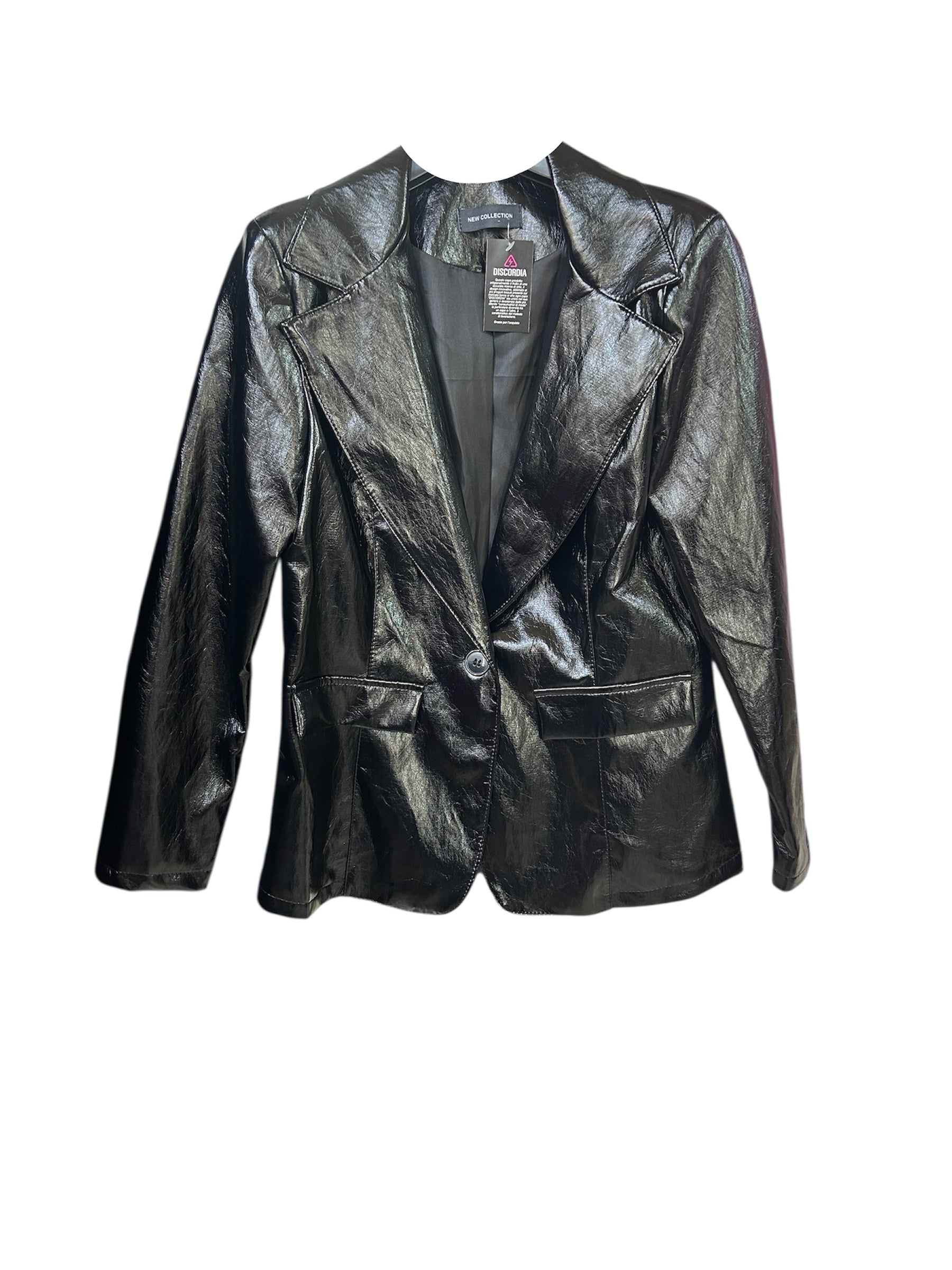 Un must-have senza tempo: blazer in pelle nero con chiusura affiancata, perfetto per un look elegante e deciso. Il taglio sartoriale valorizza la silhouette, mentre la pelle di qualità garantisce comfort e durata. Ideale per completare outfit formali o dare un tocco rock-chic ai tuoi look casual.