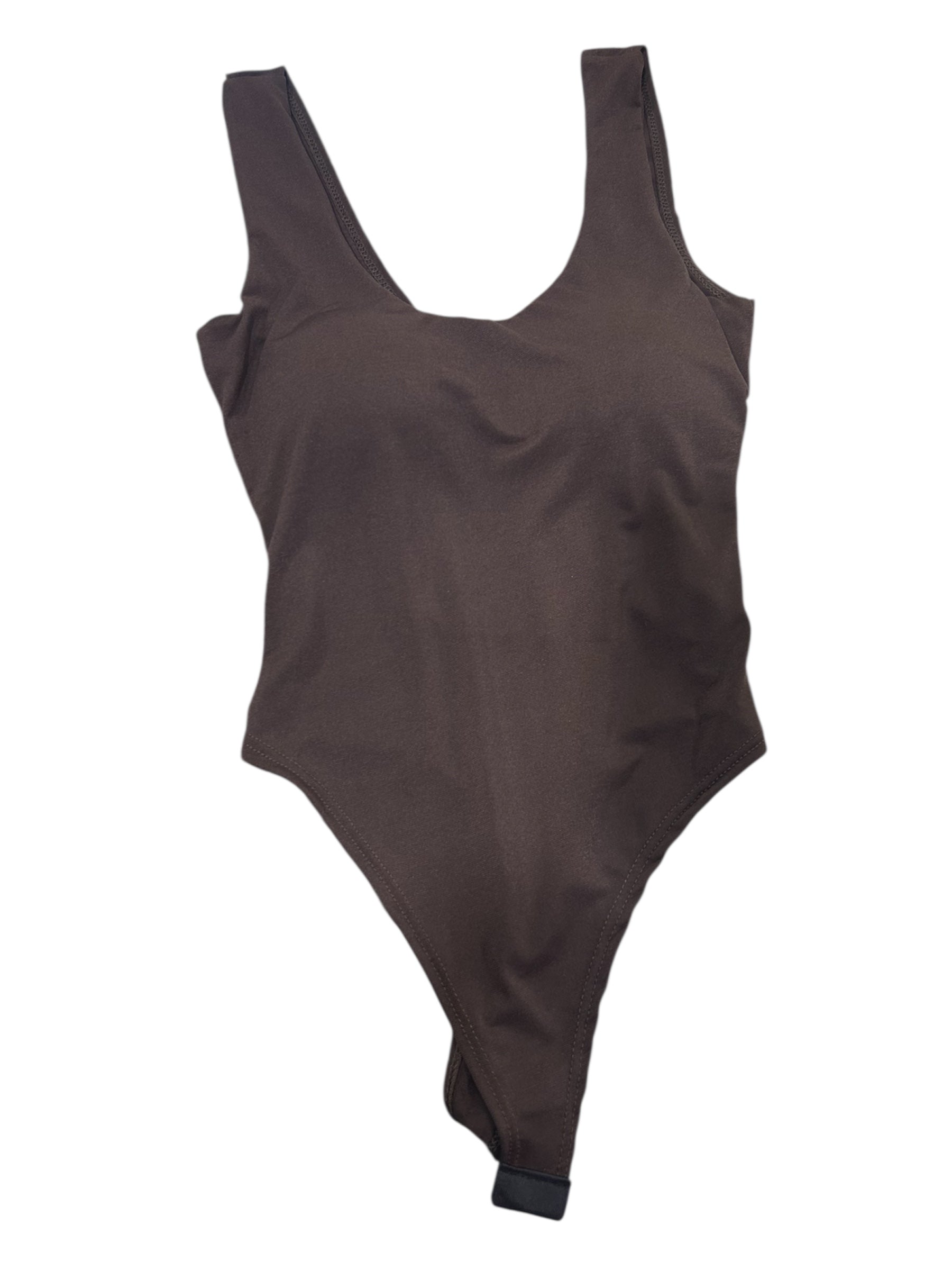 Questo body marrone basic è il capo ideale per chi ama uno stile minimal ma ricercato. Realizzato in tessuto elasticizzato, si adatta perfettamente al corpo, valorizzando la silhouette con comfort e praticità. Il design pulito con scollo rotondo e spalline larghe lo rende estremamente versatile: perfetto da indossare con jeans, gonne o pantaloni a vita alta. Chiusura con bottoni a pressione sul fondo per una maggiore comodità. Un must-have per ogni stagione.