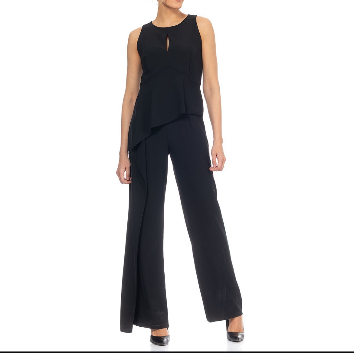 Scopri l’eleganza moderna con la nostra tuta nera senza maniche, perfetta per eventi serali, cerimonie o occasioni formali. Caratterizzata da un raffinato scollo a goccia e un taglio asimmetrico che slancia la figura, questa tuta unisce comfort e stile in un unico capo sofisticato. Il design a gamba larga offre un movimento fluido, mentre il drappeggio laterale aggiunge un tocco di originalità. Indossala con tacchi alti per un look impeccabile e deciso.