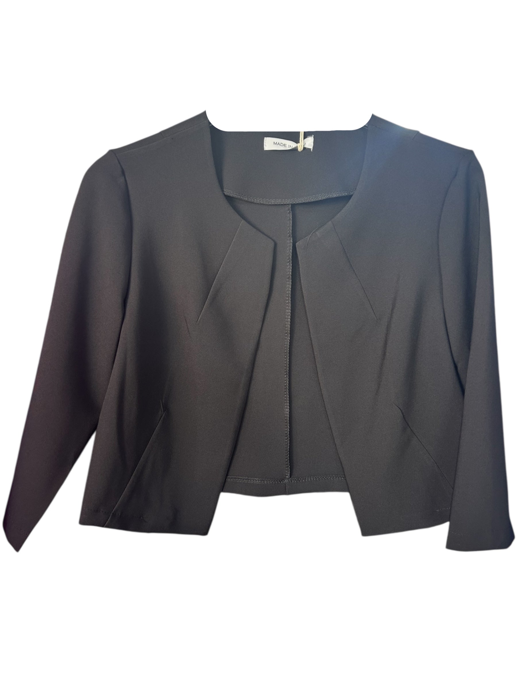 Aggiungi un tocco di classe al tuo outfit con questo giacchino elegante corto nero da donna. Caratterizzato da un design minimal e raffinato, presenta maniche a 3/4 e una vestibilità cropped, perfetta da indossare sopra abiti da cerimonia, top o camicie. Realizzato in tessuto morbido e strutturato, offre comfort e stile in ogni occasione. Ideale per eventi formali, matrimoni o serate speciali.