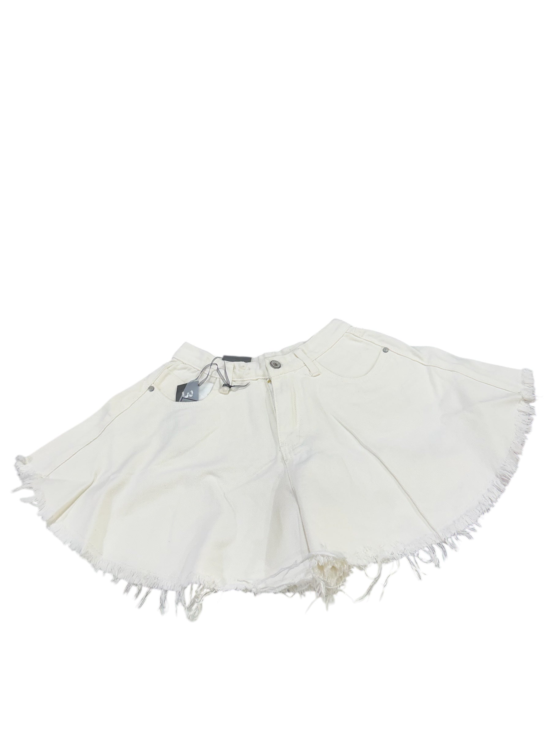 Elegante e fuori dal comune, il pantaloncino a farfalla bianco unisce stile e originalità. Realizzato in denim leggero, presenta una silhouette ampia e svasata che richiama la forma di ali di farfalla, donando movimento e femminilità al look. Il bordo sfrangiato aggiunge un tocco boho-chic, perfetto per outfit estivi freschi e glamour. Indossalo con un crop top o una camicia annodata per un effetto wow assicurato.