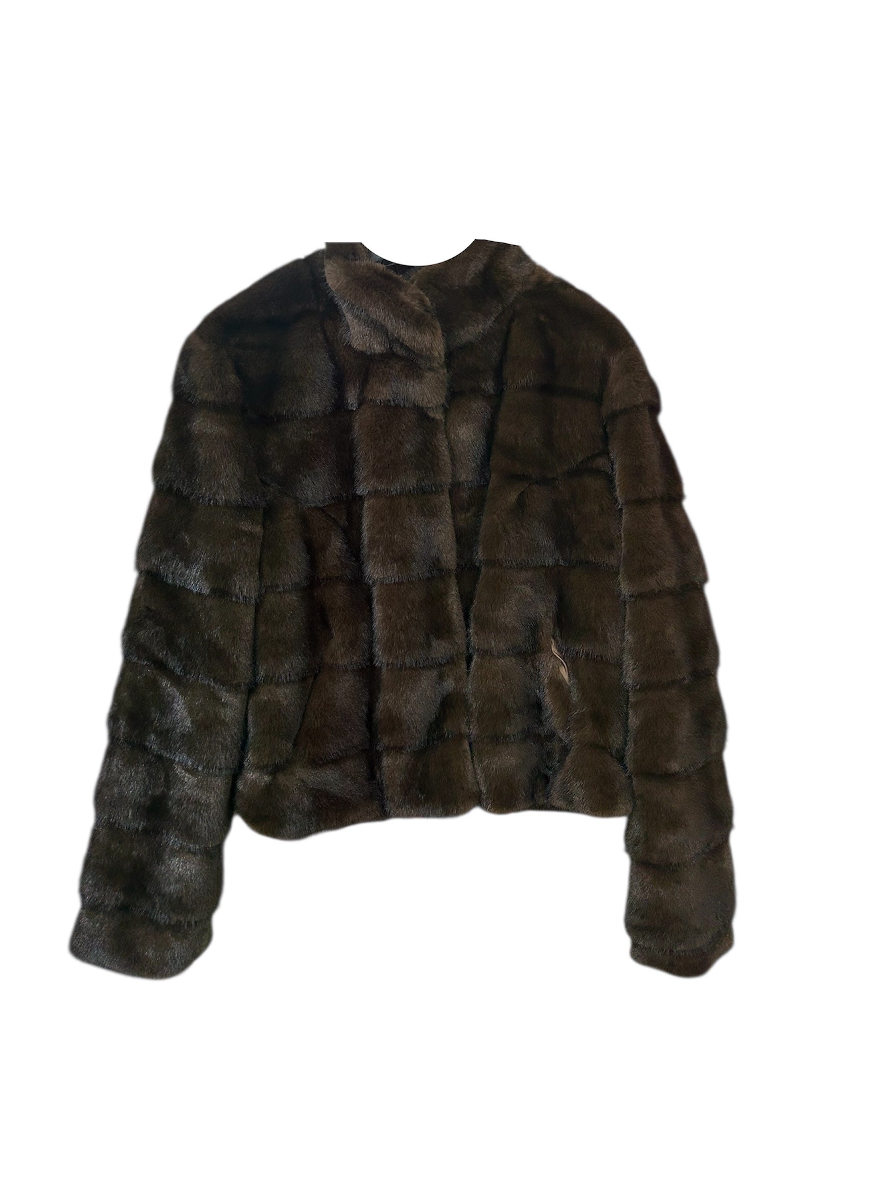 Pelliccia corta effetto visone dal colore moka scuro, perfetta per un look elegante e sofisticato. Calda, morbida e super glamour: ideale per affrontare l’inverno con stile e personalità. Abbinala con jeans o abiti per un tocco chic in ogni occasione.