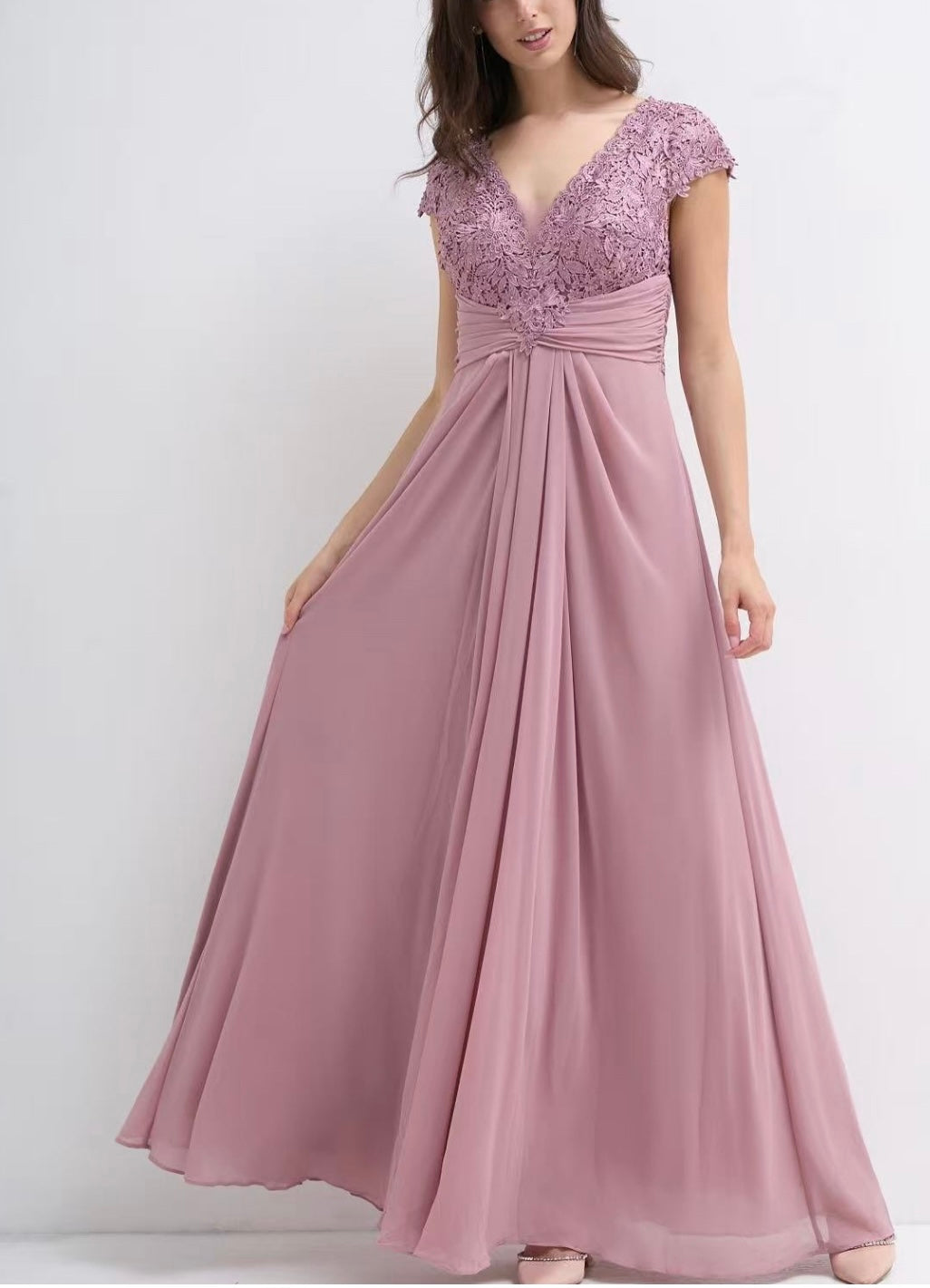 Lasciati conquistare dal fascino romantico dell'abito Rosa Provenza , una creazione elegante che unisce delicatezza e raffinatezza. Il corpino in pizzo floreale con scollo a V valorizza il décolleté con discrezione, mentre la gonna lunga in chiffon cade morbida e fluente, creando un effetto etereo e sofisticato. Perfetto per matrimoni, cerimonie o serate speciali, questo abito esprime tutta la grazia di un'eleganza senza tempo.