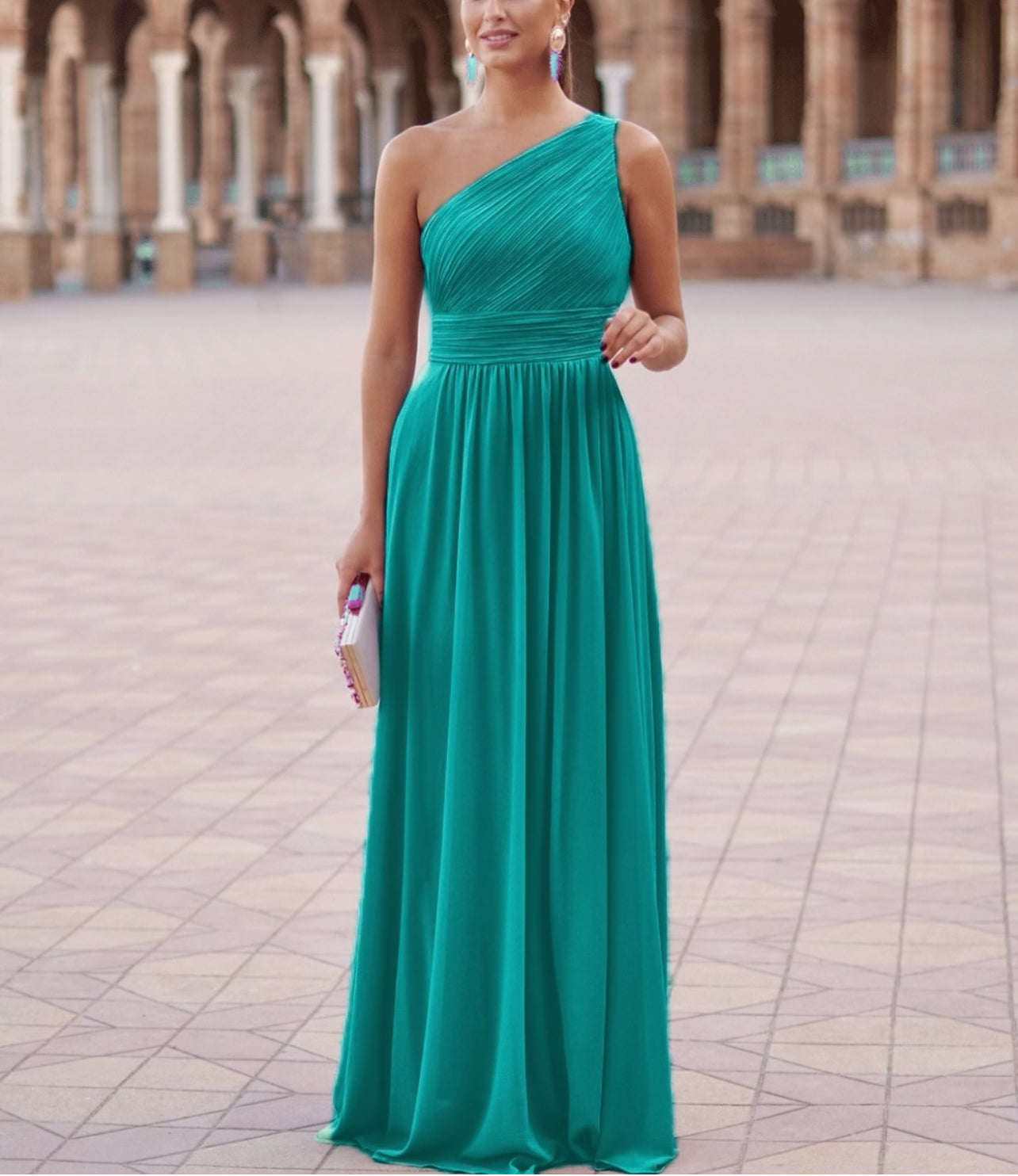 Scopri l’eleganza luminosa del nostro abito monospalla Smeraldo Andaluso. Realizzato in un tessuto fluido e leggero, questo abito si distingue per la raffinata lavorazione plissé sul corpetto e la linea morbida della gonna lunga. Il taglio monospalla valorizza con classe la figura, rendendolo ideale per cerimonie, matrimoni e serate eleganti. Il colore verde smeraldo dona freschezza e unicità a ogni look, con un tocco di femminilità audace.